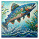 Salmon Jumping Mosaic Floral Blue Green Peach Ceramic Tile