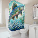Salmon Jumping Mosaic Floral Blue Green Peach Shower Curtain