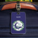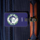 With a flip of a fin a glistening salmon dives into the safety of the flowing kelp beds to feed. In this stylised illustration, shells, kelp, plankton and fish net represent the elements that are ever present during the life cycle of Pacific Salmon. The Fully customisable luggage tag features beautiful ocean colours in blue, teal, green and grey. For nature lovers, fishers or anyone who loves an ocean theme.