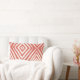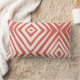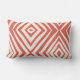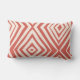 These 13" x 21" lumbar throw pillows feature a modern diamond design in salmon, also known as raspberry cream on an ivory background.