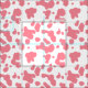 Salmon pink and white dotted cow print fabric with a cute, country aesthetic.