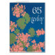 A pretty 65th Birthday card, with salmon pink geraniums on a deep blue background and elegant white lettering. From a screen-printed design by Judy Adamson, you can personalise the inside message if you wish.