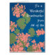 A pretty and versatile greeting card for a Grandmother, with salmon pink geraniums on a deep blue background and white lettering, You can send this card to your Grandmother for Mother's Day or Grandparents Day, or for her birthday, or even as a 'Get Well' card. From a screen-printed design by Judy Adamson, you can personalise the inside message as appropriate.
