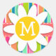 Salmon Pink & Seafoam Green Striped; Daisy Classic Round Sticker