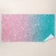 Salmon Pink & Turquoise Ombre Faux Glitter Beach Towel
