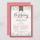 Salmon Pink, White, & Taupe Modern Birthday Party Invitation