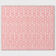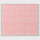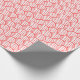 This wrapping paper has an Art Deco design of salmon curved lines in a triangle shape on a field of white repeated across the design.