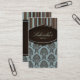 Trendy and elegant soft stripes and damask frame Salon Spa Business Card. Trendy and elegant great for any hair / nail or tanning salon, cosmetology, Arbonne, Mary Kay, Avon professional, florist, massage therapy or wellness / holistic professional.