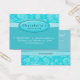 Salon gift card / certificate (Business Card) for nail or hair salon or Spa with pretty floral / flower pattern in elegant and trendy blue damask and stripes with oval company name bubble.