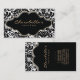 Makeup artist salon spa business card with pretty floral damask background and gold finish card.