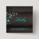 Salon / spa name tag button brooch with butterfly and floral pattern. Trendy and elegant great for any hair or nail or tanning salon or wellness spa or cosmetologist.