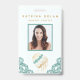 Salon Teal Gold Floral Updo Photo Hair Stylist ID Badge