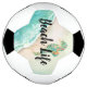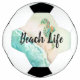 Watercolor dreams of the saltwater beach life: waves sand and shore. Decorated with a floral fantasy seahorse and your personalised text.