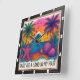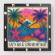 This vibrant square wall clock captures a dreamy beach sunset with a colourful starfish, seashells, and crashing waves against a backdrop of palm trees. The playful text "SALTY AIR & SAND IN MY HAIR" adds a whimsical touch, making this artistic timepiece perfect for anyone who cherishes ocean memories and coastal charm.