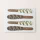 Puzzle design features an original marker illustration of a row of dark and white chocolate dipped pretzel sticks.
