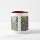 pic of gorgeous purple salvia and burgandy mums on a burgandy ringer mug. STUNNING. 2 sided pics for a view from any angle