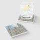 The coasters are gorgeous, a quality feel and heavy weight. They look like a precious archeological find. A rustic stone juxtaposed with a modern floral black and white print. I like the way the print goes slightly imperfect on the cut stone edges giving them a kind-of natural beauty.