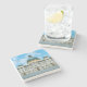 The coasters are gorgeous, a quality feel and heavy weight. They look like a precious archeological find. A rustic stone juxtaposed with a modern floral black and white print. I like the way the print goes slightly imperfect on the cut stone edges giving them a kind-of natural beauty.