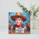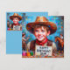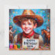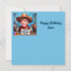 Sam is happy on his birthday. He is wearing a cowboy hat and his cowboy clothing to celebrate the day. The back of the card has a small replica of the front image and plenty of room to write a message. AI Bing and my imagination assisted in the creation of the card.