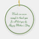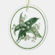 Round ceramic ornament with a vintage 1940s image of delicate white Lilies of the Valley on white and a green border. The back is white with optional text. See the entire Mother’s Day Ornament collection in the PARTY FAVORS section.