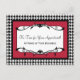 Remind your clients and customers of their hair and beauty salon appointments with these stylish black and white houndstooth appointment reminder cards with a trendy samba red border and elegant swirled filigree. These in fashion appointment reminder postcards have customisable text on both front and back that can be personalised for your personal business needs.