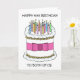 A cartoon cake covered in candles, accomapnied by the words 'Happy 40th Birthday to both of us'.