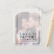 Announce your wedding postponement to your family and friends in style with this modern custom photo save the date postcard. This chic design template features your faded photo on the front with an opaque overlay and cutout frame. The words read "Love is Patient" with your new wedding date and your names to personalise. The back of the postcard has more of your wedding details to customise on a dove grey background. Congrats on your engagement and best wishes for your marriage! Designed by artist ©Susan Coffey.