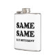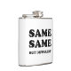 The flask itself is fine. It’s a cheap flask, obviously bought in bulk, however am prepared to overlook that. Given that it is a personalized item, I would have liked to have seen gift boxing instead of the generic packaging. Terrible printing, and/or quality. It’s a cheap, tacky vinyl. It is not cut straight and is also applied in a way that it is overhanging the bottom, causing the glue to catch on items and it will eventually roll and tear, damaging the wrap.