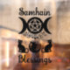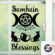 Samhain Celtic pagan Halloween Greeting and Blessing window cling with triple moon, pentacle, black cats and a witch