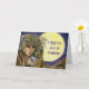 A woodland maiden holds Autumns last butterfly in a magical sphere symbolising the souls spirit. Autumn leaves adorn her hair with branches and pheasant feathers. The full moon in the background with the words "A wish for you at Samhain. Inside a beautiful Samhain greeting and wish.