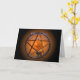 A pumpkin and a black cat perch on a reddish-orange chord pentacle to wish everyone a Happy Samhain.