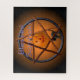 A pumpkin and a black cat perch on a reddish-orange chord pentacle to wish everyone a Happy Samhain.