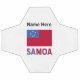 The red, white and blue Samoan Flag, on a soccer ball, with the word SAMOA underneath in the colours of the flag. Personalise with your name for a special touch. Or, create a customised gift by adding someone else's name. Font used for name is Bell Centennial.