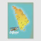 Samos Greek Island map with a beautiful old vintage style red bi plane.