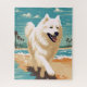 Colourful graphic art design of a samoyed at a tropical beach with palms. Awesome gift for Samoyed owner and Samoyed lover.