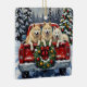 Embrace the snowy charm of the holiday season with this stunning Samoyed Christmas design! This festive scene features three beautiful, smiling, snow-white Samoyeds sitting contentedly in the back of a classic red pickup truck, perfectly suited for the snowy winter forest setting. The vintage truck is charmingly decorated with a vibrant Christmas wreath, adorned with sparkling red and gold ornaments and warm, glowing lights. Abundant snowflakes fall around the scene, truly creating a magical winter wonderland. With a decorated Christmas tree in the background, this design is perfect for capturing the joyful spirit of the holidays and makes an excellent Christmas gift for any Samoyed owner, dog lover, or admirer of festive and magnificent dog art.