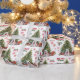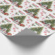 The repeated pattern on this Christmas wrapping paper includes an image of a beautiful white Samoyed dog wearing a festive red bow. The dog sits in front of a decorated Holiday tree. Stylised red and green text says MERRY CHRISTMAS", and your own signature is in two fields for you to customise. Other images included in the pattern include red decorative snowflakes, candy canes, and a peppermint lolly pop. Cute!