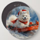 Samoyed Dog in Sledge Let it Snow Christmas 6 Cm Round Badge