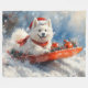 Samoyed Dog in Sledge Let it Snow Christmas Fleece Blanket