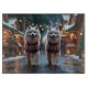 This festive design captures the joyful spirit of the holiday season, featuring an adorable dogs.Nestled in a winter wonderland, complete with a decorated Christmas tree, and beautifully wrapped presents. Snowflakes gently fall, adding a magical touch to the scene, while the vibrant colours of the holiday decorations create a warm and cheerful atmosphere.