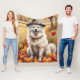 Samoyed In Autumn Leaves Thanksgiving Art Fleece Blanket