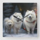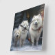 Samoyed Snowy Sleigh Christmas Decor Square Wall Clock