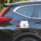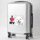 This sticker features a delightful Samoyed puppy with a bright and cheerful expression. The puppy has fluffy white fur, expressive blue eyes, and its tongue is playfully sticking out, adding to its endearing charm. To the left of the puppy's face, there is a shiny red heart, symbolising love and affection. Great for new Fur Baby parents.