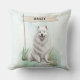 Add cosy charm to your home with this Samoyed throw pillow featuring a watercolor design and customisable name flag. Ideal for breed lovers.