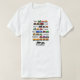Example of plain white shirt with black lettering in the design. Many different styles, sizes and colours are available through menus on this page.