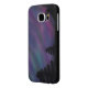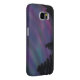 Choose a sophisticated and striking case with this Aurora Borealis, or Northern Lights, case for your Samsung Galaxy phone. The image was digitally hand-painted and has vibrant shades of blue, purple, pink, jade, and teal in the background and black whimsical trees and hills in the foreground.