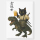 Samurai Cat with Beer & T-Rex | Retro Japanese Art Magnet