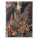This spiral notebook features a closeup of legendary samurai Minamoto no Yorimitsu and an ally as they fight off some oni, in a printed reproduction of an 1858 Japanese woodblock print by master Utagawa Yoshitsuya (aka Ichieisai Yoshitsuya).