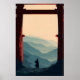 Samurai Mountain Poster Lone Swordsman, Torii Gate, Misty Horizon