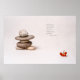 Closeup view of a pile of pebbles, stones of grey colour in the form of a human being and a small bunch of dry ashberries. Textured photography. The following haiku text by Matsuo Basho is added to some copies of the image - No blossoms and no moon, and he is drinking sake all alone! (Matsuo Basho). Funny zen like photography to be used as a positive gift or decoration.